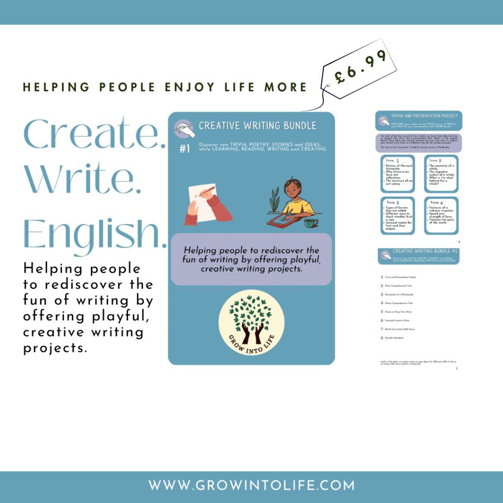 With Grow Into Life, you can learn how to adopt helpful and adaptable habits and strategies that support you to enjoy life more, especially when it comes to Wellbeing, Creative Writing and Business.